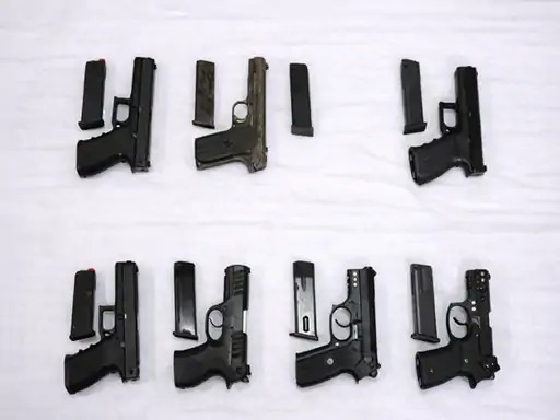 Two suspects arrested with 7 illegal pistols.